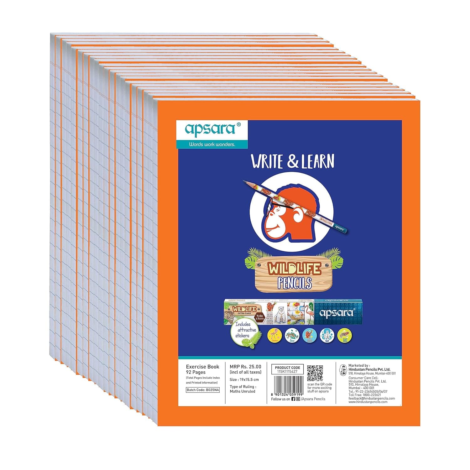 Apsara Small size Softbound Notebook |19 CM x 15.5 CM Approx – Pages 92 | Maths Unruled | GSM 56 | Use For School & College Students and Professionals | Covers May Differ | Pack of 20 Books